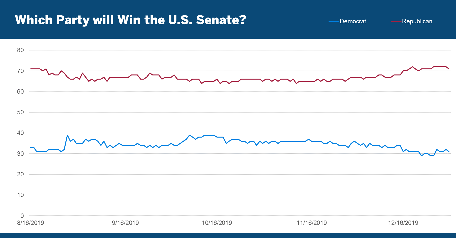 As the year came to a close, Predictit.org was indicating that odds of either party winning the White House in 2020 had narrowed to a near-even split: